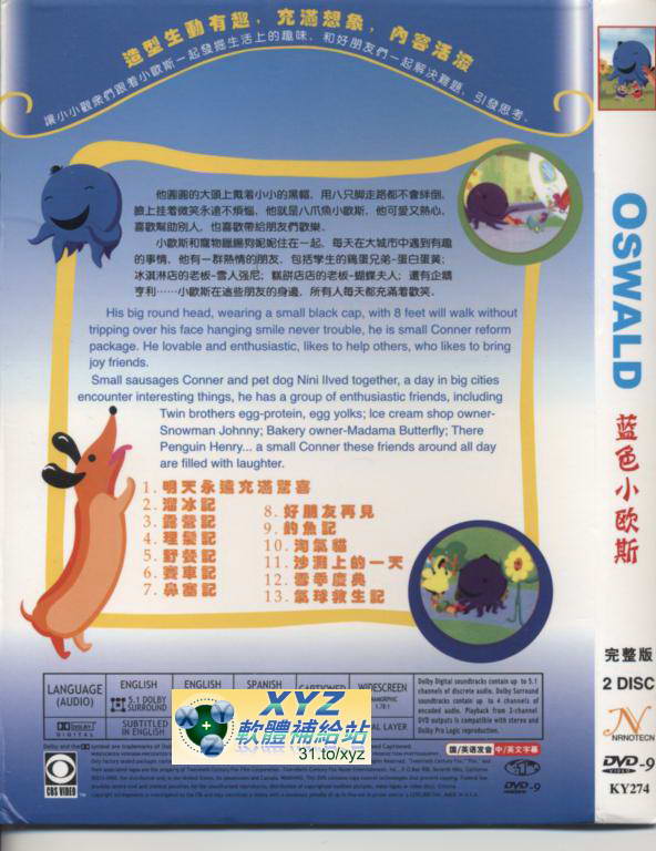 藍色小歐斯 OSWALD 27-52集(完) 英語/國語雙語發音 繁體中文/英文語言字幕版(DVD版)(卡通)(適用任何家用DVD播放機)